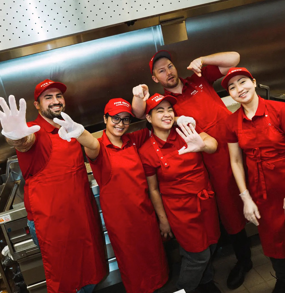 The success of Five Guys isn’t possible without our phenomenal crew members. Build a fulfilling career with a team that has a passion for hard work, burgers, and having fun along the way.